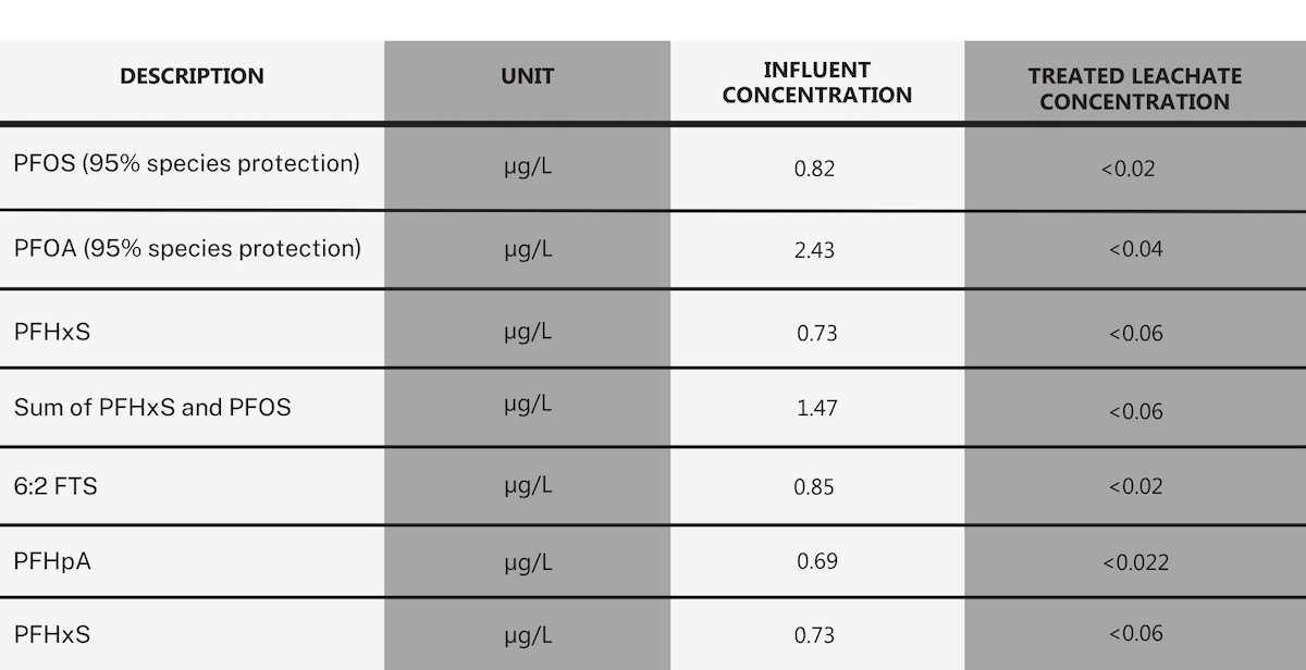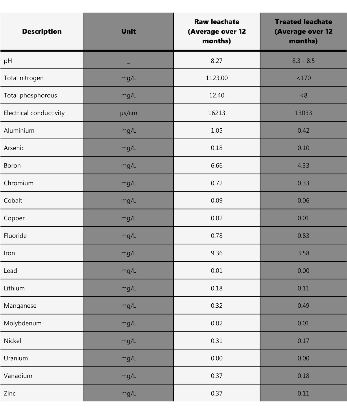 Results from the Shoal Bay Leachate Treatment Plant show removal of a host of contaminants in leachate.